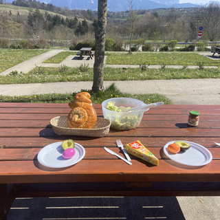 Mittlerweile sind wir an unserem ersten Übernachtungsplatz südlich von Valence angekommen. Wir sind bereits im Dezember hier (Le Domaine Distaise) gewesen. Weil wir diesen Aufenthalt in guter Erinnerung hatten, sind wir zum Wiederholungstäter geworden. Die Übernachtung kostet Euro 5 und der Besitzer hat einen kleinen Laden, wo er auch seine Produkte verkauft. Wie es sich gehört in Frankreich, geniessen wir einen leckeren Rotwein vor dem Wohnmobil im Sonnenuntergang und können unser "von Mensch zu Mensch Geschäft" leben. Der erste Kontakt ist geknüpft. Eine Familie, die einen Truck zu ihrer 1-Zimmer-Wohnung umgebaut hat. Wir sprechen über alternative Wohnideen, philiosopieren über das Leben mit Händen und Füssen, ein wenig Französisch, ein wenig Englisch und erzählen auch von unserem Projekt. Die kleine Tochter, Hendrix, 5 Jahre geniesst dieses bunte Leben. Papa arbeitet auf der Baustelle und Mama ist Künstlerin. Wir bewundern die Kunst (Instagram) und tauschen die Kontaktdaten und übergeben unsere neue Visitenkarte. Natürlich zeigen wir ihnen auch unsere neue Homepage, die nun auch in verschiedenen Sprachen online ist. Den Tag runden wir mit einem Spaziergang und mit Käse sowie Rotwein ab. Bonne nuit. Ein perfekter Ostersonntag.
